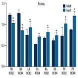 Corrected sinus node recovery time (SNRTc) and effective refractory period (ERP) of the atrium and pulmonary veins were measured in 10 adult (3−6 years old) and 10 aged dogs (>9 years old). Expression levels of HCN2 and HCN4 channel mRNAs and proteins were measured in the sinoatrial node, atrium, and pulmonary veins by real-time PCR and Western blotting.