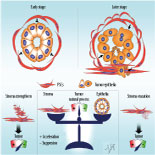 Pancreatic ductal adenocarcinoma (PDAC) is a type of highly lethal malignant tumor. PDAC is locally invasive and is surrounded by a dense desmoplasia or fibrosis, which can involve adjacent vital structures. Previously, the effect of pancreatic stellate cells (PSCs) of stroma in the progression of PDAC has received more attention, and most in vitro and in vivo studies revealed that PSCs appear to confer biological aggressiveness. However, clinical trials targeting desmoplasia or PSCs showed disappointing results. Recent studies found that stromal components, especially activated PSCs, are able to inhibit the occurrence and progression of PDAC. Inhibition of the stroma or desmoplasia through genetic regulations or drugs accelerates the formation and progression of PDAC. Thus, we hypothesized that in various times and spaces, there is a balance between the tumor epithelia and stroma; once the balance is upset, the tumor traits may undergo certain changes. Therefore, finding the key changing points of this relationship to corrupt or influence it, instead of blindly inhibiting the stroma motivation or simply maintaining stroma activation, will destroy the cooperation or promote the competition and antagonism among cells. This approach may render tumors more vulnerable and thus unable to resist anti-cancer therapies.