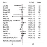 We conducted a literature search using PubMed, EMBASE, and Cochran databases. The pooled odds ratio (OR) with 95% confidence intervals (CIs) were calculated. Fixed-effects and random-effects models were used. Dominant model, recessive model, and additive model were used in this meta-analysis.