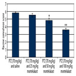 Animals treated with 50 or 100 mg/kg montelukast had significantly lower RCS and significantly increased FMJ onset time compared to the saline-treated animals. Moreover, groups given 25, 50, or 100 mg/kg montelukast had significantly lower MDA and higher SOD levels compared to the saline-treated group. The differences were more pronounced in the 100 mg/kg montelukast-pretreated group (p<0.001).