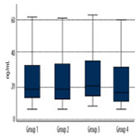 The subjects with rheumatic diseases had the highest median serum level of antibodies against HSP60 – 20.49 ng/mL. The values in the subjects with NTG, POAG, and in controls were 18.79 ng/mL, 18.61 ng/mL and 17.61 ng/mL, respectively (p=0.96).